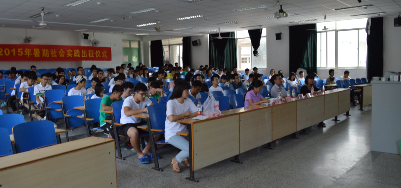 7月7日,能源与电气木瓜视频 举行了2015年暑期社会实践出征仪式,木瓜视频 党委副书记汤鸣鸿、院团委书记孙瀚、13级本科生辅导员杨丹老师、14年级本科生辅导员雷镕甄老师、15级本科生辅导员王颖老师以及52支实践团队主要成员共同出席了此次出征仪式。