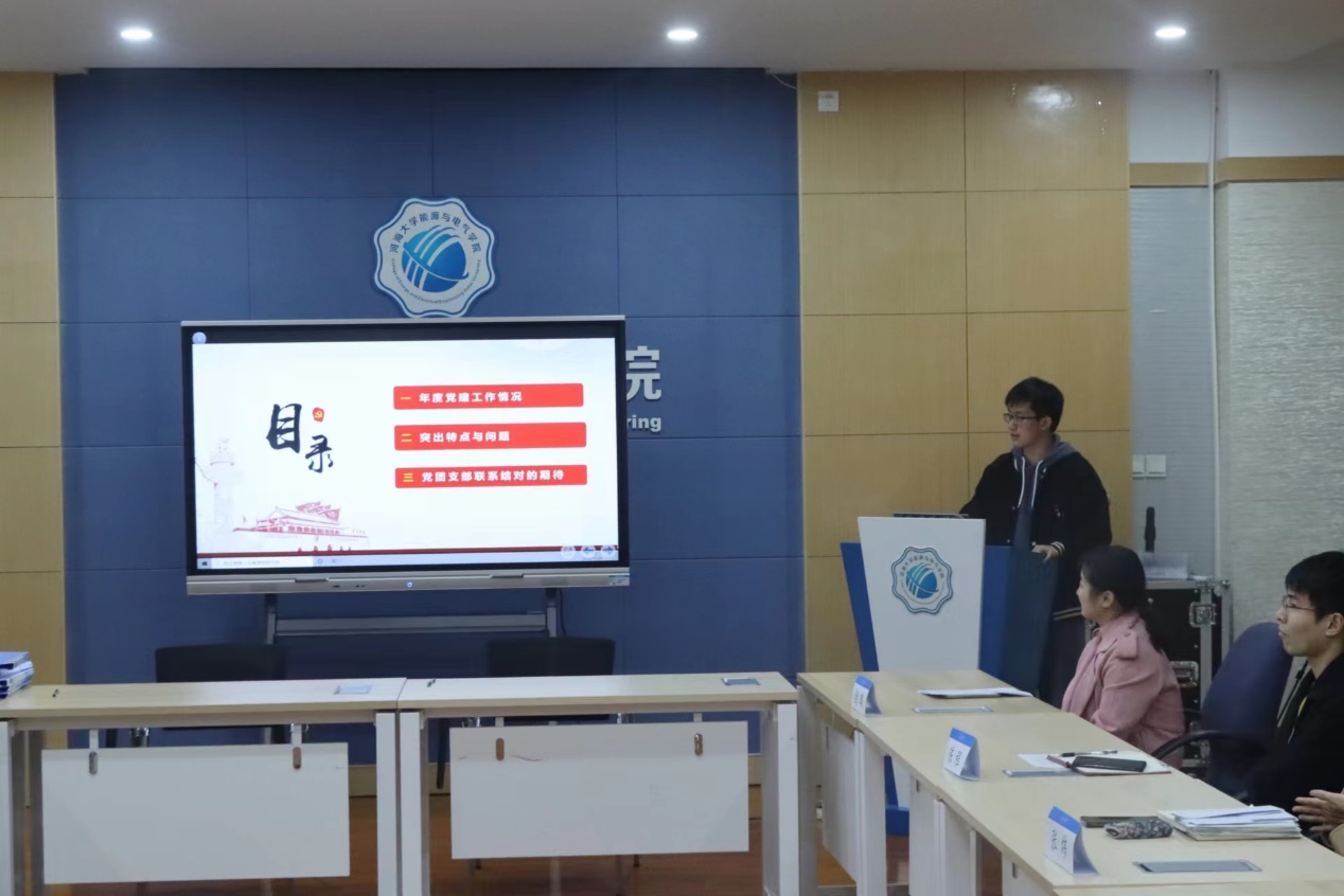 本科2021级年级团支书朱宇成,2022级年级团支书徐婧璇介绍了团支部工作概况,强调团支部建设过程中思想引领的作用,展现了支部丰富多彩的素质拓展特色活动,并对党团支部共建提出了党团员互动、工作互助、经验共享等建议。