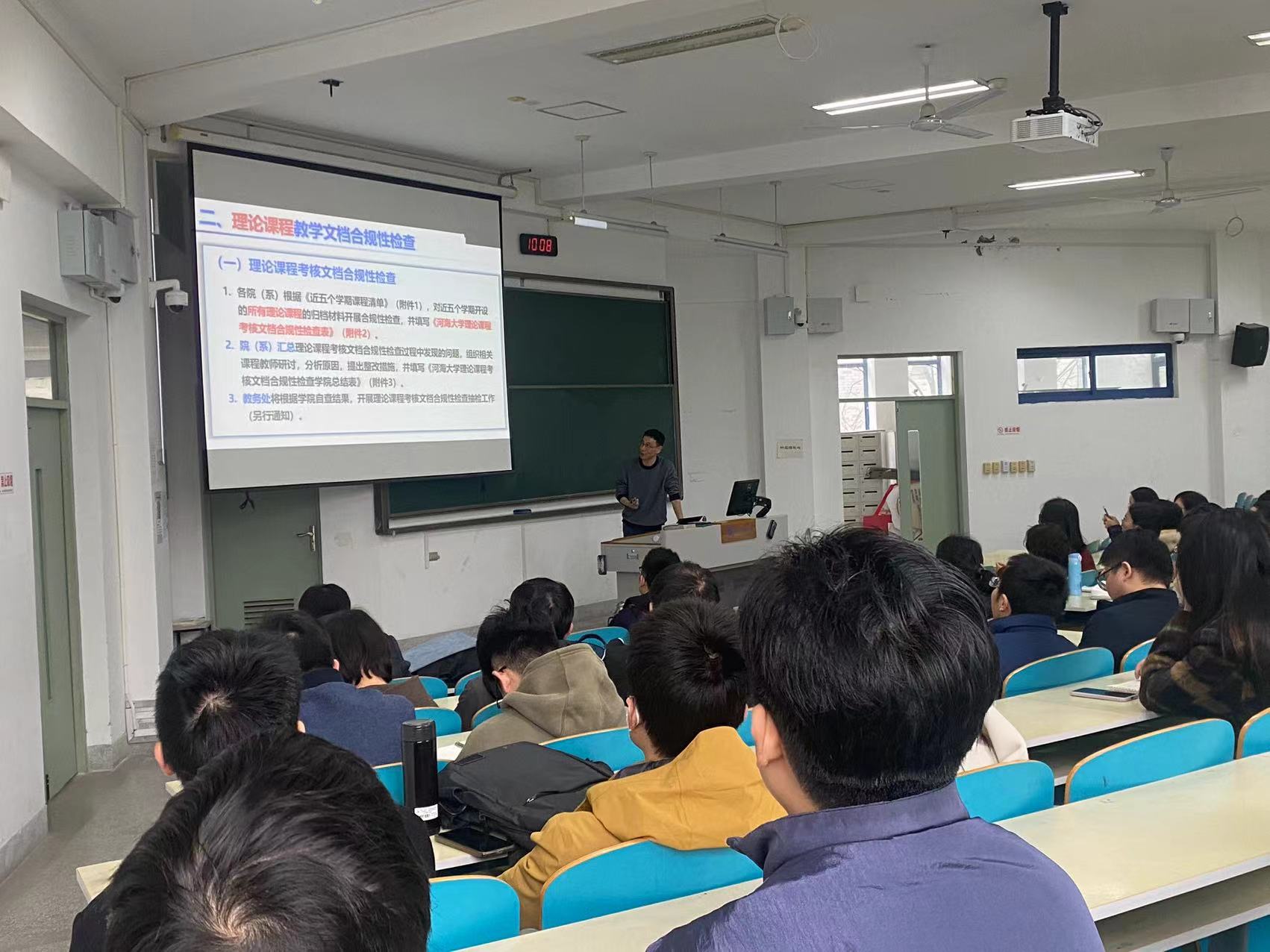 为规范课程教学文档建设,规范课程教学过程性考核,保障和提高教学质量,木瓜视频 于3月14日上午在勤学楼5212召开课程教学文档合规性检查工作布置会。