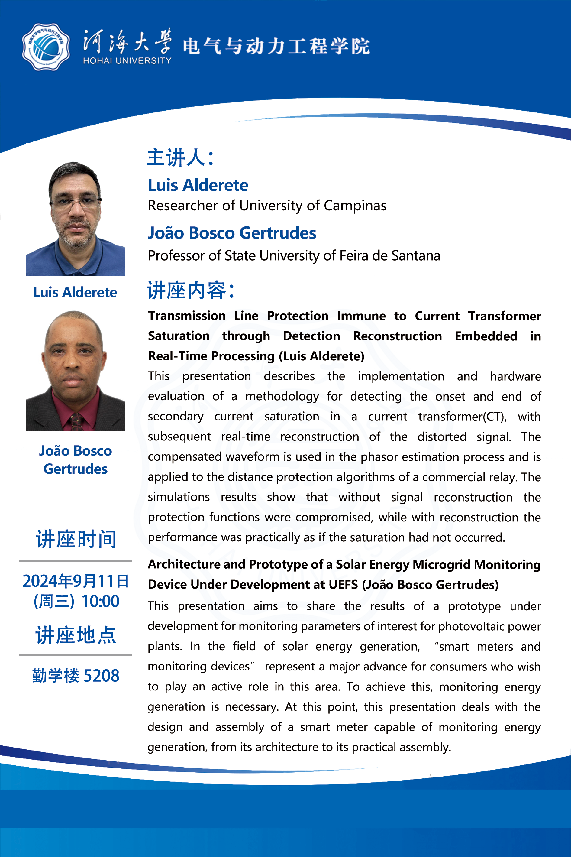 学术报告:Transmission Line Protection lmmune to Current Transfomer Saturation through Detection Reconstruction Embedded in Real-Time Processing