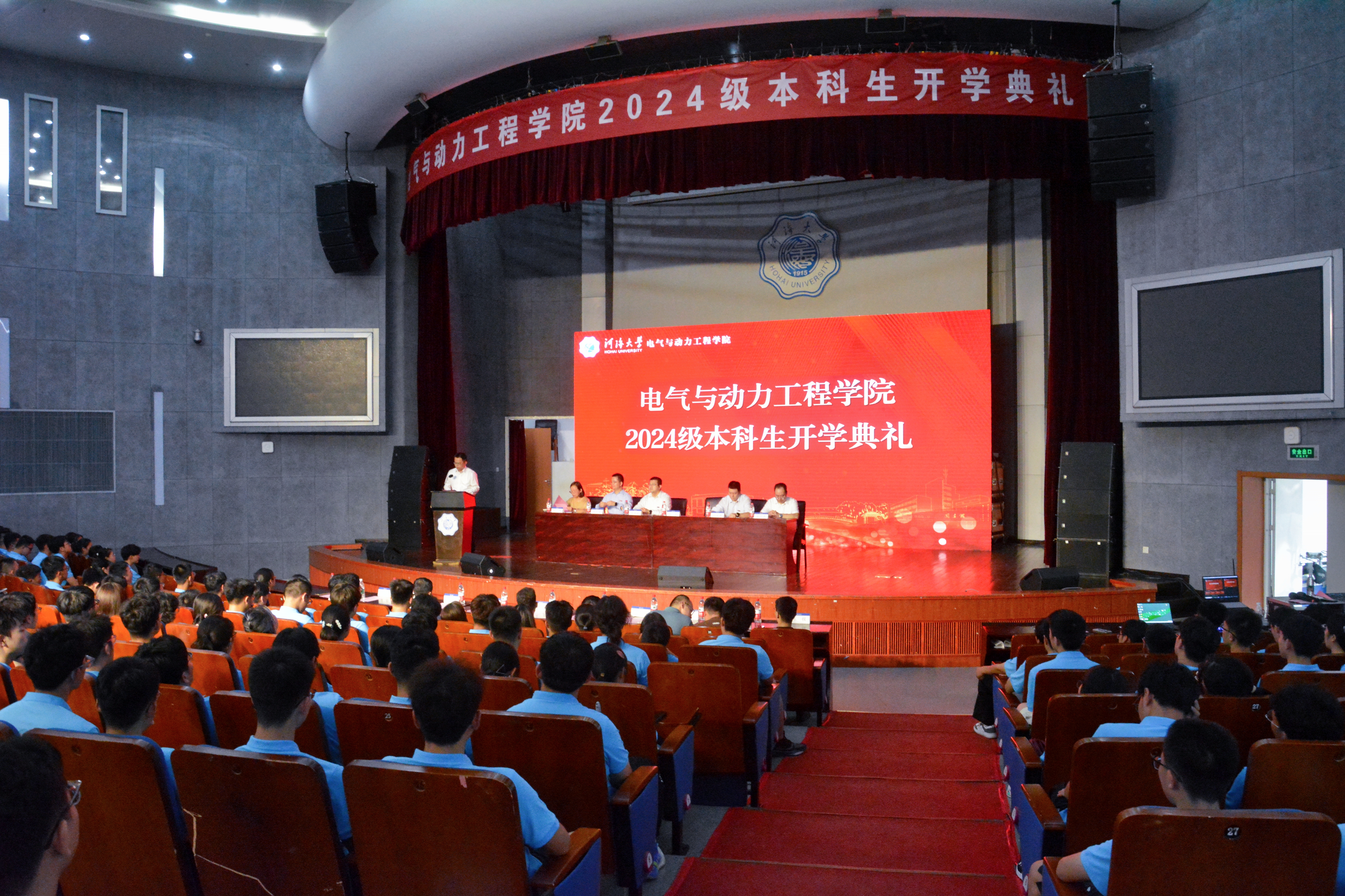 9月11日,木瓜视频 在江宁校区博学楼报告厅举行2024级本科生开学典礼。院党委书记吴洪彪,院长张犁,典礼嘉宾、电气院杰出校友、国网苏州市相城区供电分公司书记钱科军,副院长孙国强,副院长金宇清,院党委副书记张炜出席典礼。系主任、2024级本科生班导师、2024级辅导员和296名本科新生参加典礼。
