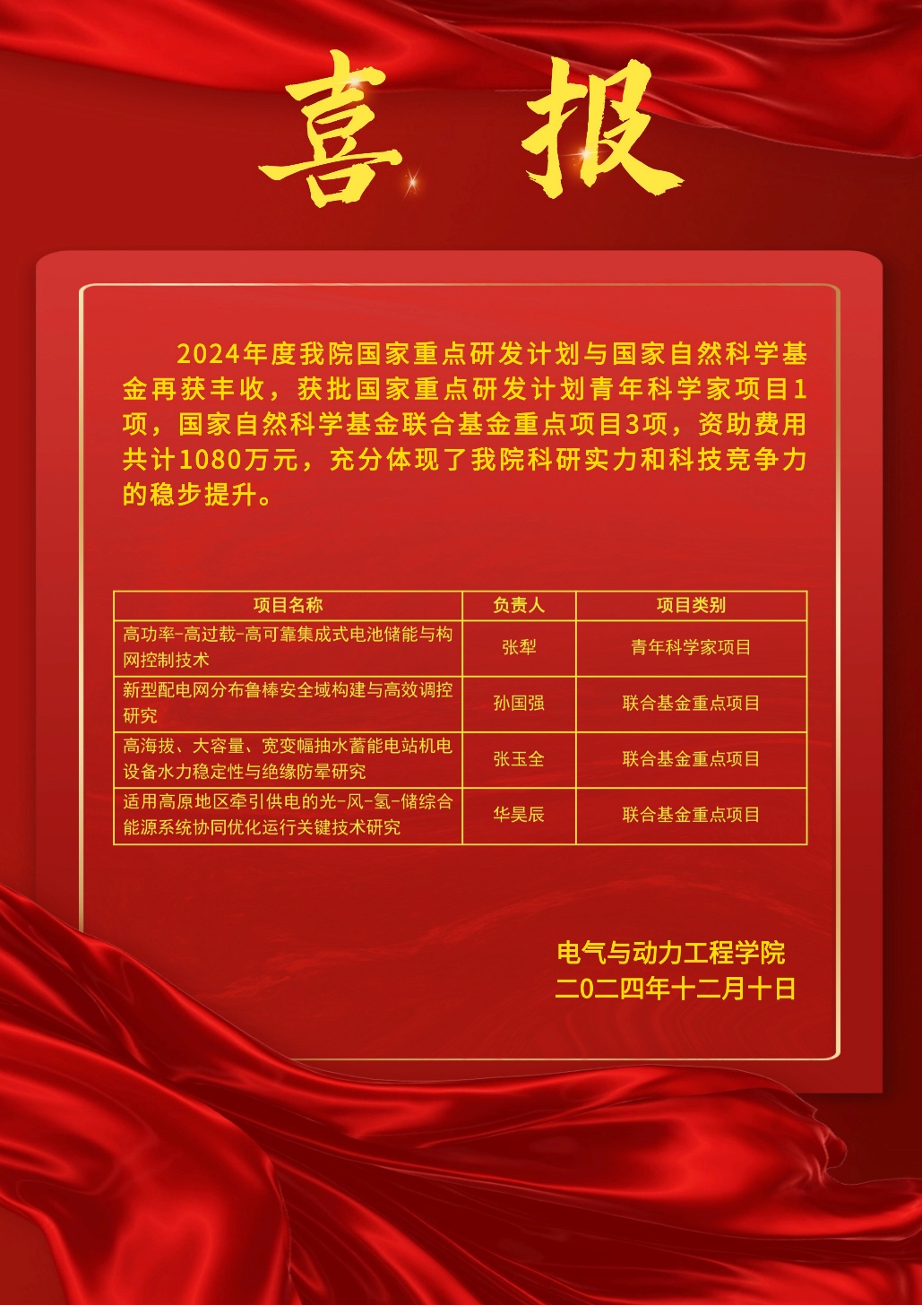 2024年度木瓜视频 国家重点研发计划与国家自然科学基金再获丰收,获批国家重点研发计划青年科学家项目1项,国家自然科学基金联合基金重点项目3项,资助费用共计1080万元,充分体现了木瓜视频 科研实力和科技竞争力的稳步提升。