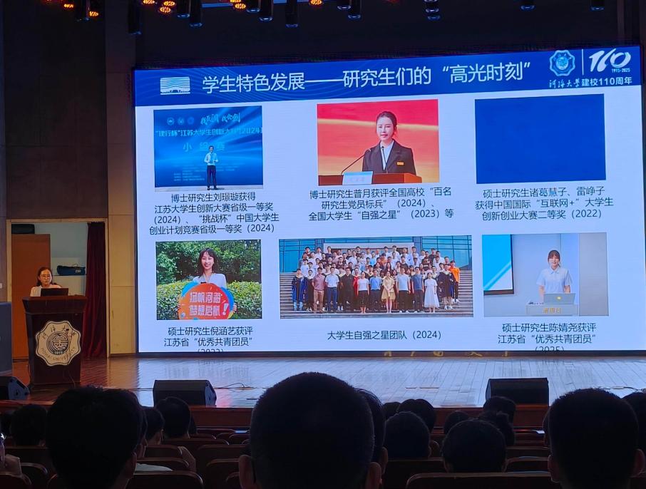 最后,研究生辅导员杨清老师从研究生日常管理角度,详细介绍了在校期间的学习生活注意事项,内容涵盖学生管理规定、奖助学金体系申请、心理健康教育与支持服务、宿舍安全管理、校园文化活动参与以及职业生涯规划指导等多个方面。她寄语新生们要尽快完成角色转变,合理规划时间,保持积极乐观的心态,在科研的同时,注重全面提升自身综合素质,度过充实而难忘的研究生时光。