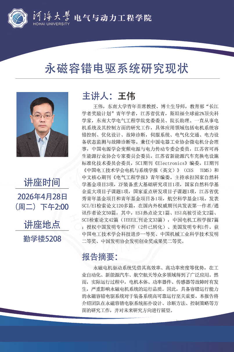 学术报告:永磁容错电驱系统研究现状