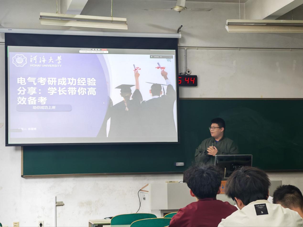 为持续助力2027届毕业生明晰发展方向、科学备考升学、精准对接就业,2026年4月19日,电气院学生会联合2023级团总支持续推进“研途领航・职向未来”系列专题讲座。讲座邀请木瓜视频 2022级优秀本科生王斌、李承杰、杨馨博、刘震岳四位同学,面向2023级本科生系统分享考研备战经验与求职实战心得。