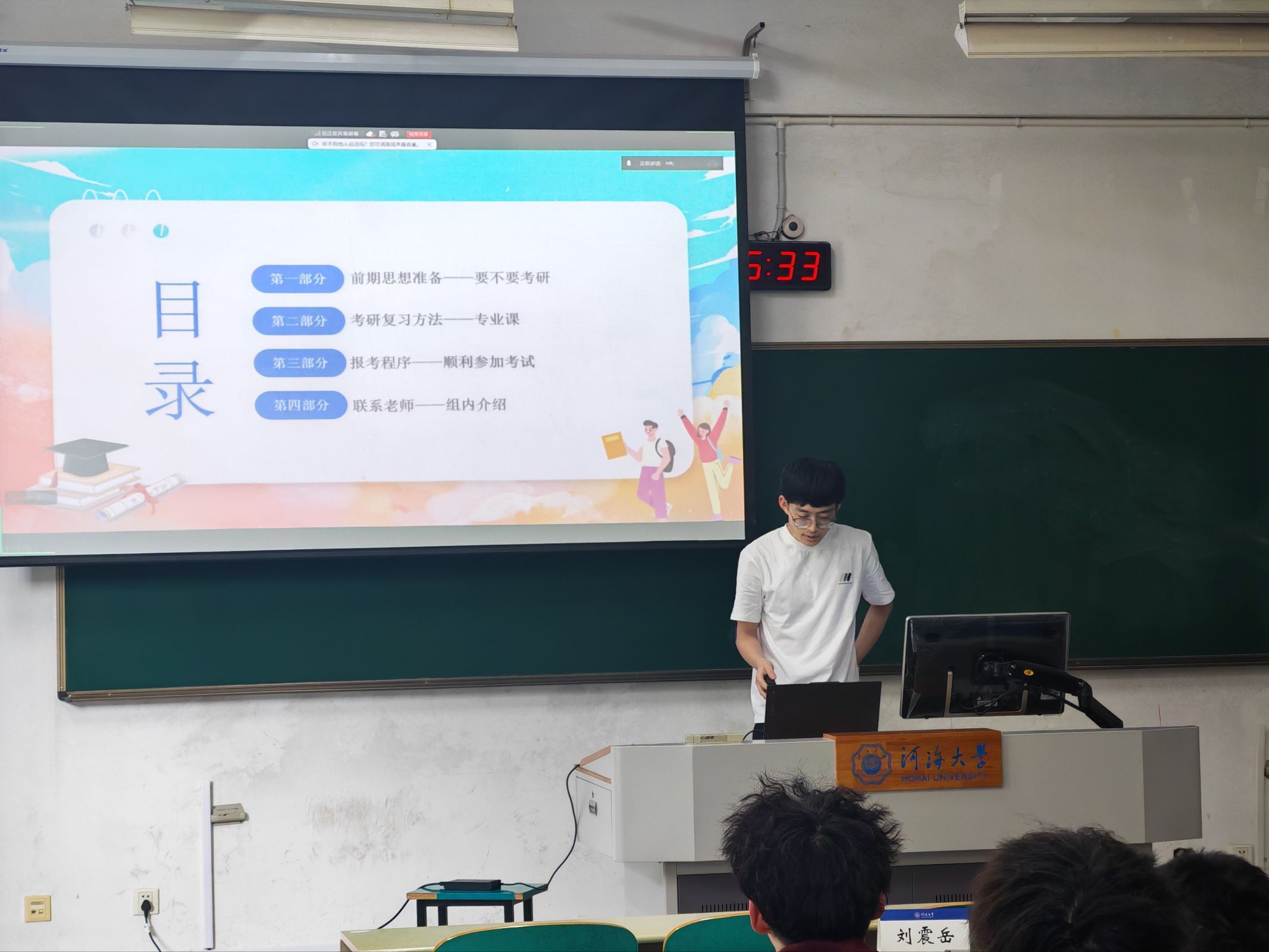 刘震岳同学则聚焦考研专业课与报考程序,带来极具实操性的建议。他提醒同学们“先确定院校,为目标努力”,避免盲目报考,同时关注官网动态以防专业课改考。在专业课备考上,他主张分阶段推进:前期梳理框架、暑期强化做题、秋季真题训练、考前全真模拟。他还详细介绍了报考程序中的关键节点,如预报名、正式报名、线上确认、准考证打印等,并鼓励有意报考木瓜视频 的同学提前联系导师,做到“少鸽子、讲诚信”。